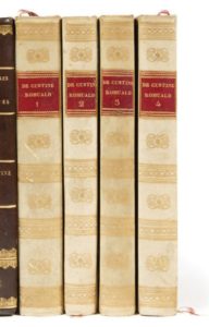 4 volumes in-8 de (2) ff., 483 pp., (2) ff. de table et d'errata ; (2) ff., 310 pp., (1) f. de table ; (2) ff., 329 pp., (1) f. de table et d'errata, (2) ff., 387 pp., (2) ff. de table et d'errata : demi-vélin ivoire à coins, dos lisses ornés, pièces de titre de maroquin rouge (reliure de l'époque).