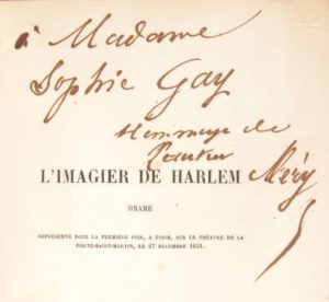 Envoi autographe signé de Joseph Méry sur le faux-titre : à Madame Sophie Gay/Hommage de l'auteur/Méry
