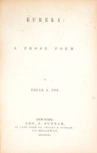 Edgar Allan POE. Eureka : a Prose Poem. New York, Geo. P. Putnam, 1848.