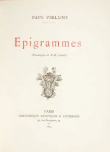 Paul VERLAINE. Épigrammes. Paris, Bibliothèque artistique & littéraire, 1894.