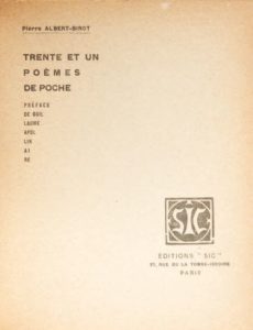 Pierre ALBERT-BIROT. Trente et un poèmes de poche. Préface de Guillaume Apollinaire. Paris, Éditions “Sic”, 1917.
