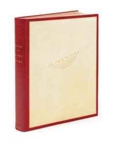 In-4, maroquin rouge, dos lisse, plats de parchemin serti d'un filet doré, titre en lettres dorées sur le premier, non rogné, tête dorée, couverture et dos conservés, étui (Alix).