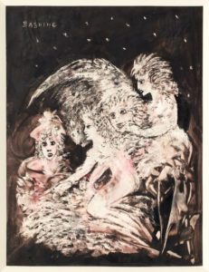 Peintre et illustrateur surréaliste d'origine ukrainienne (Kharkov 1901 - Paris 1968), Maurice Baskine adhère au groupe surréaliste en 1946 et participe à l'exposition de 1947 à la Galerie Maeght, où il réalise le treizième autel intitulé : “L'Athanor.” Influencé par l'ésotérisme, il gravera trois eaux-fortes pour Arcane 17 d'André Breton publié au Sagittaire en 1947.