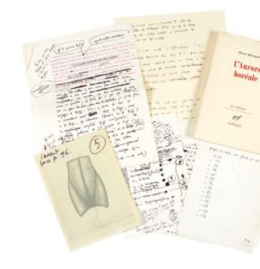 On joint neuf pages autographes (5 de format in-8 et 4 de format in-4) dont une en partie dactylographiée : brouillons de texte et essais d'index de L'Aurore boréale.