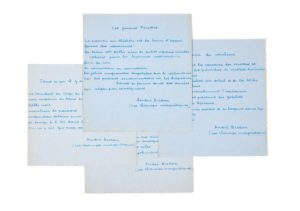Manuscrits autographes signés de quatre poèmes extraits des Champs magnétiques.