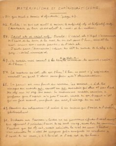Les trois feuillets qui suivent se réfèrent “au matérialisme dialectique et sa lutte avec les concept[ions] mécanistes et idéalistes”, un abrégé des thèses de L. Piper, Séminaire de philosophie marxiste.
