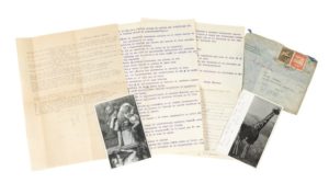2 lettres dactylographiées signées au crayon, 2 poèmes dactylographiés ou en copie carbone. En tout 4 pages in-4, en espagnol ; une enveloppe conservée.