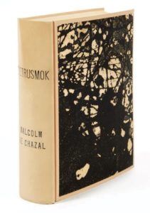 Fort in-12, demi-veau ivoire à la Bradel, plats de papier décoré en noir sertis d'un listel de veau ivoire, entièrement non rogné, couvertures et dos conservés, étui (Leroux, 1985).