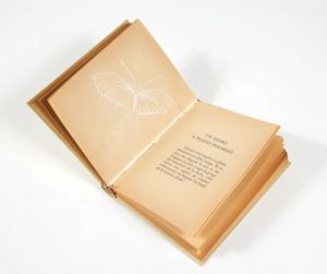 Réalisation des plus astucieuses - la transparence du papier créant l'illusion de papillons voletant entre les pages.