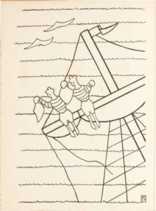 Elle est illustrée, en frontispice, d'une composition au trait de Henri de la Jonquière, figurant deux marins assis sur la voile d'un bateau en pleine mer.