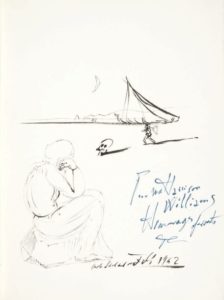 Il est signé et daté de 1942 et porte un envoi autographe signé “Pour Mrs Harrison / Williams / Hommages fervents / Dali”.