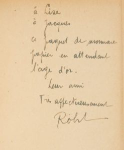 à Lise / à Jacques / ce paquet de monnaie / papier en attendant / l'âge d'or. /