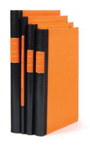 In-8, demi-maroquin noir à petits coins, dos lisse, pièce de titre de veau brique, plats, doublures et gardes de papier ciré brique, non rogné, tête dorée, couvertures et dos conservés, étui (D.-H. Mercher).