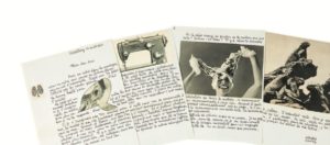 Tout au long de sa lettre, se trouvent collées des reproductions photographiques, en noir ou en couleur, par exemple la publicité d'un savon Dali, une machine à coudre sur la page évoquant Degottex et Magritte, la silhouette d'une femme en guêpière sur laquelle il a contrecollé une large bouche, ou encore des iguanes sur le dernier feuillet.