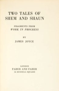 James JOYCE. Two Tales of Shem and Shaun. Fragments from Work in Progress. Londres, Faber and Faber, 1932.