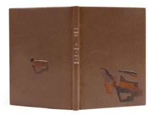 In-12, maroquin noisette, dos lisse, décor mosaïqué en relief sur les plats de pièces de cuir en plusieurs tons de brun, doublures de box mastic, non rogné, couverture et dos conservés, chemise, étui (Monique Mathieu, 1966).
