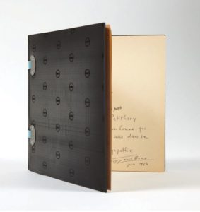 In-8 carré, demi-veau noir, plats de caoutchouc Topy, nerfs apparents, chemise, étui (J. de Gonet, 1988).