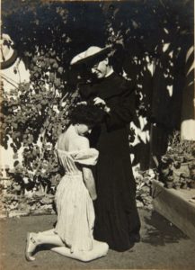 Juliet, agenouillée. Le cliché a probablement été pris par le photographe luimême avec un déclencheur à retardement.