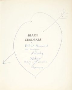 Envoi autographe signé de l'auteur et de sa compagne, dans le dessin d'un coeur percé d'une flèche, sur la page de faux-titre : à / Albert Mermoud / en souvenir / d'Ouchy / Blaise / Ray [autre dessin de coeur percé] mone / Pâques 1954