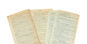 4 tapuscrits avec corrections autographes. Sans date. 29 pages petit in-folio sur papier pelure en tout.