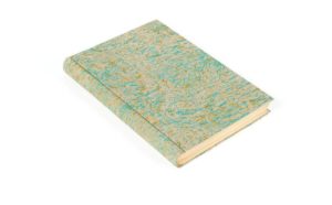 Grand in-4, peau naturelle à la Bradel, dos et plats recouverts d'un décor bicolore jaune et bleu, non rogné, tête dorée, couvertures et dos conservés, étui (Leroux, 1989).