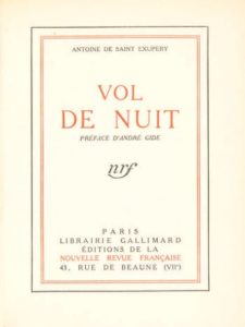 Antoine de SAINT-EXUPÉRY. Vol de nuit. Préface d'André Gide. Paris, Éditions de la Nouvelle Revue française, 1931.