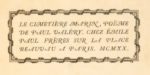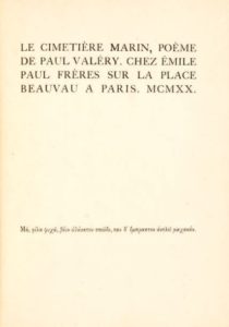 Paul VALERY. Le Cimetière marin, poème. Paris, Émile Paul frères, 1920.