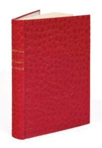 In-12, maroquin rouge estampé façon reptile, dos lisse, doublures et gardes de papier incrusté de fils de soie multicolores, non rogné, tête dorée, couverture illustrée et dos conservés, chemise-étui (Leroux).