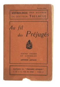 [ARTAUD Antonin]. Anthologie des œuvres du Docteur Toulouse. Au fil des Préjugés. Editions du Progrès Civique, 1923. In-8, broché. Petit manque en bas de la couverture