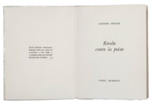 ARTAUD Antonin. Révolte contre la poésie. 1944. [Barbezat]. In-4, broché. Première édition …