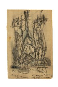 ARTAUD Antonin. Dessin original signé au crayon noir sur page de carnet, 17 x 11,3 cm. Circa 1947.