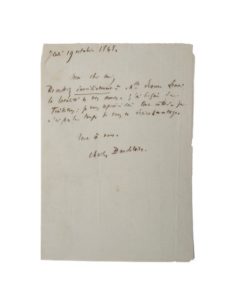 BAUDELAIRE Charles. Billet autographe signé. Jeudi 19 octobre 1848, 2 pages in-12 dont une …