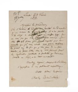 BAUDELAIRE Charles. Lettre autographe signée au Président du Comité de la Société des Gens de …