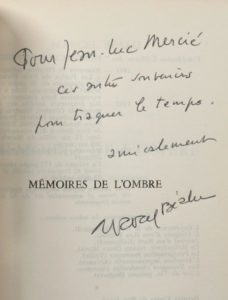 Envoi autographe signé : «Pour Jean-Luc Mercié, ces autres souvenirs pour traquer le temps, amicalement Marcel Béalu».