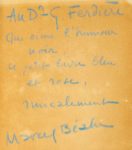 Envoi autographe signé : «Au Dr G. Ferdière qui aime l'humour noir, ce petit livre bleu et rose, amicalement, Marcel Béalu».