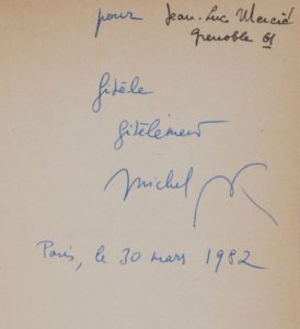 Envoi autographe signé : «Pour Jean-Luc Mercié, fidèle, fidèlement, Michel Butor, Paris, le 30 mars 1982».