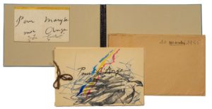 Dédicace de René Char sur un petit carton «Pour Maryse».