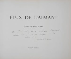 CHAR René. Flux de l'Aimant. Maeght, 1964. In-folio oblong, broché. Tiré à part à 10 …