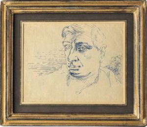 CHIRICO Giorgio de. Autoportrait recto-verso. Dessins originaux à l'encre bleue circa 1927. 19,5 x 25 cm, sous encadrement.