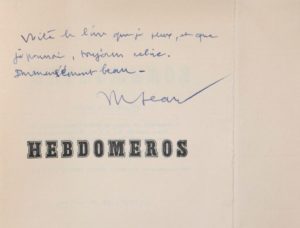 Exemplaire de Marcel Jean portant une annotation de sa main : «Voilà le livre que je peux, et que je pourrai toujours relire. Immensément beau».