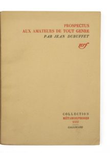 DUBUFFET Jean. Prospectus aux amateurs de tout genre. Paris, NRF, 1946. In-12, broché, …