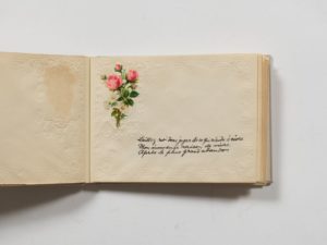 13 pages ornées de chromos et d'un dessin original aux crayons de couleurs de Paul Eluard «Laissez-moi donc juger de ce qui m'aide à vivre mon immense raison de vivre après le plus grand abandon».