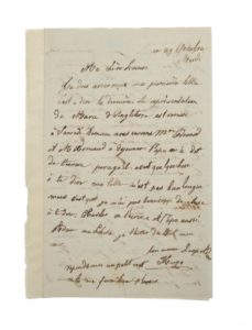 Superbe et très rare lettre écrite conjointement par Victor Hugo (3 pages) et sa fille Léopoldine à Louise Bertin, compositrice, amie proche de Victor Hugo : ... «Papa m'a dit de t'écrire car il avait quelque chose à te dire» ... «Je suis effaré et stupide, non de peur...mais de fatigue et il semble que cela me repose enfin de vous écrire... en attendant, plaignez-moi».