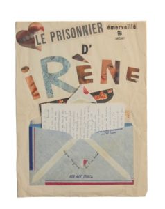 Superbes collages sur une feuille comportant contrecollée une enveloppe avec 5 billets de déclaration d'amour à «ma petite tulipe».