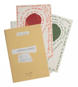 MARIEN Marcel. Ithyphallismes. 1989. In-4, en feuilles, étui-chemise. Maquette comprenant 4 pages …