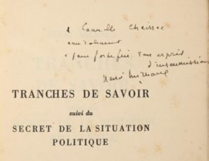 Enoi : «A Camille Chaissac amicalement, pour fortifier son esprit d'insoumission, Henri Michaux.»