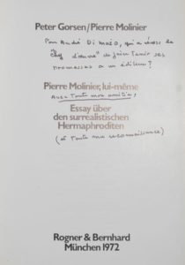 [MOLINIER]. GORSEN Peter. Pierre Molinier, lui-même. Munchen, Rogner et Bernhard, 1972. In-8, …
