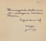 Envoi autographe signé : «Hommage très chaleureux au verdoyant Docteur Ferdière. Signé tout vif, Norge, juin 77».
