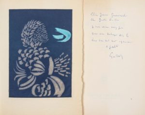 Envoi autographe signé «Chère Jane Graverol, cher Gaston Ferdière, je vous aime assez fort pour vous tutoyer tous les deux d'un seul mot synonyme de fidélité Guy Rosey».