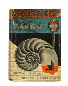 Envoi autographe de Marcel Jean : «En souvenir des Secrets devenus Spectres mais toujours Gardédias. A J-L Mercié, amitiés de Marcel Jean». [SURRÉALISME]. READ Herbert. Surrealism. London, Faber and Faber, 1936. In-4 cartonné, jaquette illustrée.
